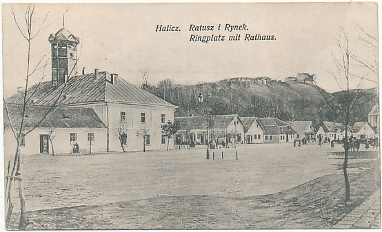 Pocztówka Halicz Rynek i Ratusz postkarte Halytsch postcard Halych открытка Галич z obiegu 1916r pocztówki Kresy wschodnie  pocztówki z kresów Kresy na starych pocztówkach