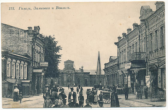 Zgięty róg. Pocztówka Homel ulica Zamkowa widok na dworzec postkarte Gomel weißrussisch postcard Gomel Belarusian Homl открытка Гомель pocztówki Kresy wschodnie pocztówki z kresów Kresy na starych pocztówkach postkarte Weissrussland postcard Belarus открытка Белоруссия