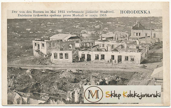 Horodenka Spalona dzielnica żydowska, synagoga 1916r
