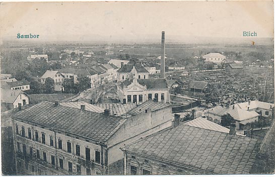 Pocztówka Sambor Widok ogólny postkarte Sambir postcard Sambir открытка Самбор z obiegu 1917r pocztówki Kresy wschodnie  pocztówki z kresów Kresy na starych pocztówkach