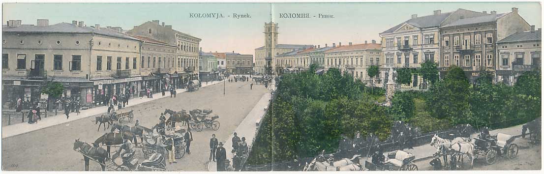 Pocztówka podwójna Kolomyja Rynek postkarte Kolomea postcard Kolomyia Kolomyya открытка Коломия Коломыя pocztówki Kresy wschodnie  pocztówki z kresów Kresy na starych pocztówkach