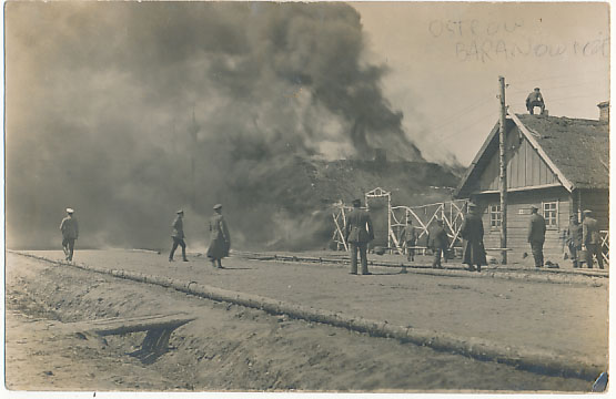 Ostrów Baranowicki Płonące domy 1917r fotograficzna