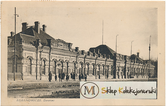 Pocztówka Baranowicze dworzec kolejowy, postkarte Baranawitschy Bahnhof, postcard Baranovichi railway station, открытка Барановичі вокзал, pocztówki dworce kolejowe, pocztówki Kresy wschodnie, pocztówki z kresów, Kresy na starych pocztówkach