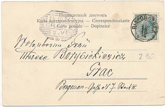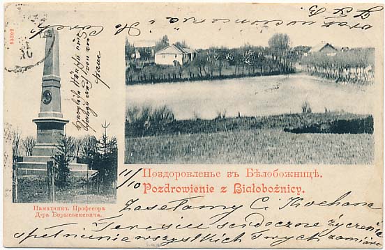 Pocztówka Białobożnica postkarte Białobożnica postcard Białobożnica открытка Белобожница z obiegu 1904r długi adres pocztówki Kresy wschodnie  pocztówki z kresów Kresy na starych pocztówkach