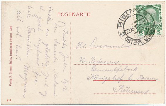 Pocztówka Bielsko Biała Kościół postkarte Bielitz-Biala postcard Bielsko-Biala открытка Бельско-Бяла z obiegu 1912r.