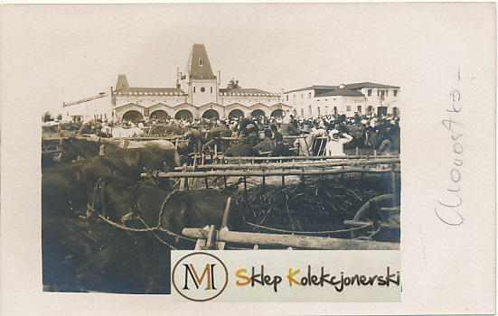 Pocztówka Chorostków Rynek i ratusz hr. Siemieńśkiego postkarte Chorostkiw postcard Khorostkiv открытка Хоростків Хоростков pocztówki Kresy wschodnie pocztówki z kresów Kresy na starych pocztówkach