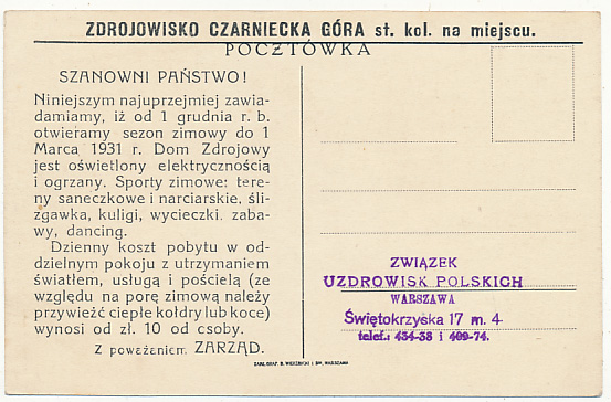 Pocztówka Czarniecka Góra Zdrojowisko reklamowa