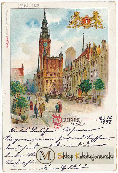 Pocztówka Gdańsk Danzig postkarte Danzig postcard Gdańsk  открытка Гданьск z obiegu 1899r pocztówka długi adres
