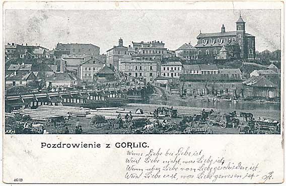 Pocztówka Gorlice Pozdrowienie z Gorlic litografia postkarte Görlitz postcard Gurlitz открытка Горлице z obiegu 1900r. długi adres
