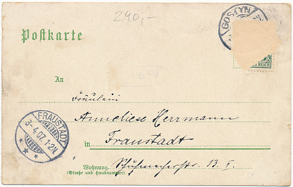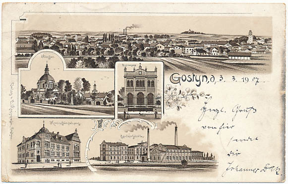 Zgięty róg. Pocztówka Gostyń Kilka widoków postkarte Gostyn Gostingen postcard Gostyn открытка Гостынь z obiegu 1907r długi adres