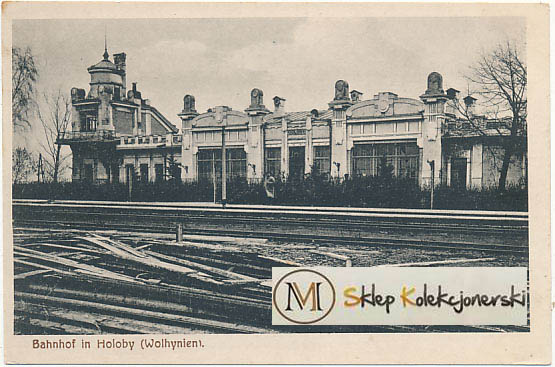 Pocztówka Hołoby Dworzec kolejowy postkarte Holoby Bahnhof postcard Holiby railway station открытка Голобы вокзал pocztówki Kresy wschodnie pocztówki z kresów Kresy na starych pocztówkach