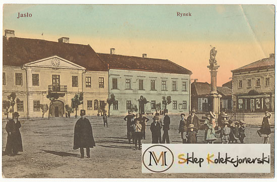 Zgięty róg. Pocztówka Jasło Rynek, postkarte Jassel, postcard Jasło, открытка Ясло