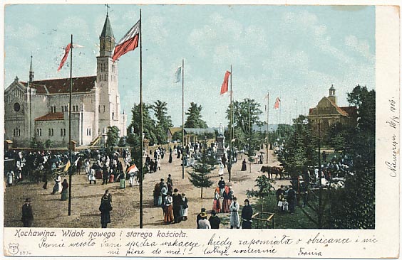 Pocztówka Kochawina Nowy i stary kościół postkarte Kochawina postcard Kochawina открытка Кохавине pocztówki Kresy wschodnie  pocztówki z kresów Kresy na starych pocztówkach