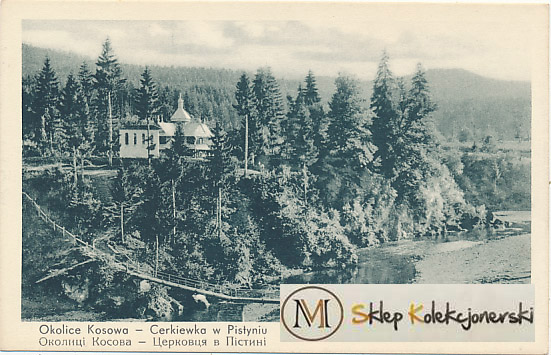 Pocztówka Kosów Cerkiewka w Pistyniu, postkarte Kossiw, postcard Kosiv, открытка Косiв, Косов, Kossow Гуцу́льщина, pocztówki Kresy wschodnie pocztówki z kresów Kresy na starych pocztówkach, pocztówki Huculszczyzna, pocztówki Senkowski