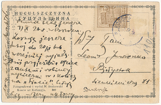 Pocztówka Kosów Saliny, postkarte Kossiw, postcard Kosiv, открытка Косiв, Косов, Kossow Гуцу́льщина, pocztówki Kresy wschodnie pocztówki z kresów Kresy na starych pocztówkach, pocztówki Huculszczyzna, pocztówki Senkowski