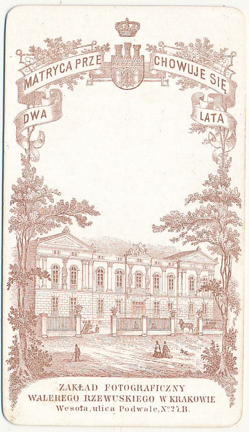 Cienki kartonik dodatkowy napis Matryca przechowuje się........... Oryginalna fotografia w formacie Carte de Visite , CDV wym. 10,5 x 6,5 cm.