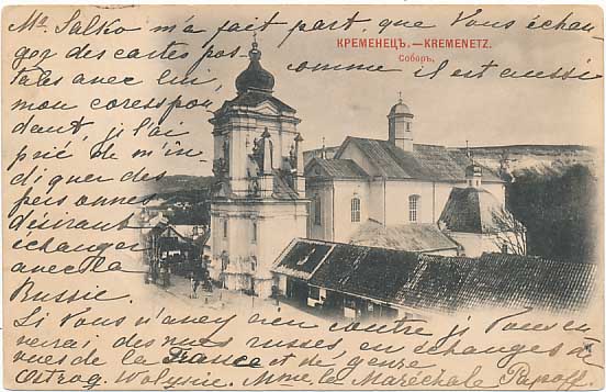 Pocztówka Krzemieniec Cerkiew postkarte Kremenez postcard Kremenets открытка Кременец z obiegu 1903r długi adres postkarte Orthodoxe Kirchenbauten postcard Orthodox church открытка Православный храм pocztówka długi adres