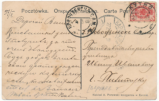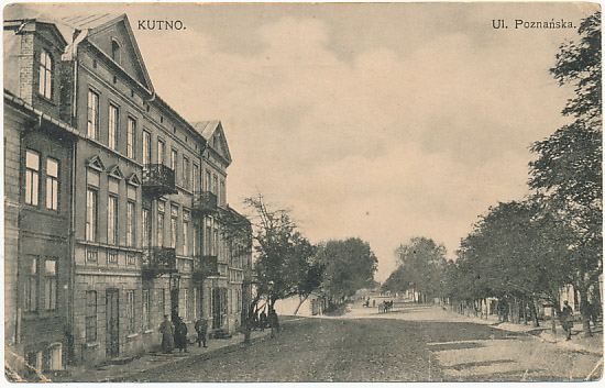 Zgięty róg. Pocztówka Kutno Ulica Poznańska postkarte Kutno postcard Kutno открытка Кутно z obiegu 1909r