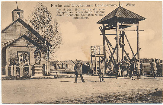 Pocztówka zgięta. Pocztówka Landwarów Wilno Kościół postkarte Landwerau Landwarowo bei wilna postcard Lentvaris in Vilnius открытка Лентварис Вильнюс z obiegu 1917r pocztówki Kresy wschodnie pocztówki z kresów Kresy na starych pocztówkach