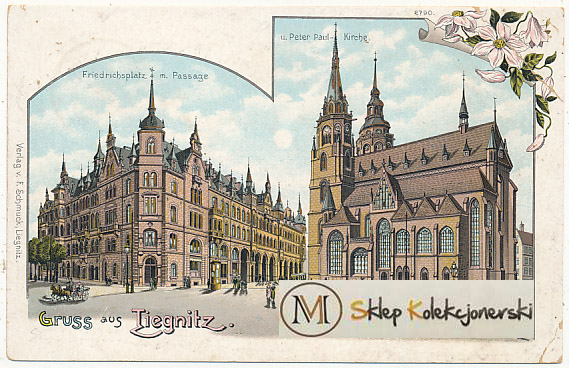 Zgięty róg. Pocztówka Legnica Gruss aus Liegnitz, postkarte Gruss aus Liegnitz, postcard Legnica, открытка Легница