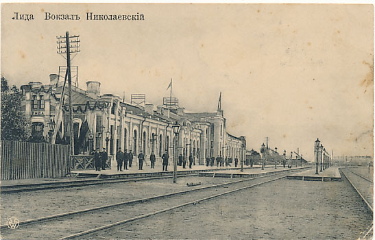 Pocztówka Lida Dworzec kolejowy postkarte Lida weißrussisch Bahnhof postcard Lida railway station открытка Ліда вокзал pocztówki Kresy wschodnie pocztówki z kresów Kresy na starych pocztówkach postkarte Weissrussland postcard Belarus Открытки Беларуси