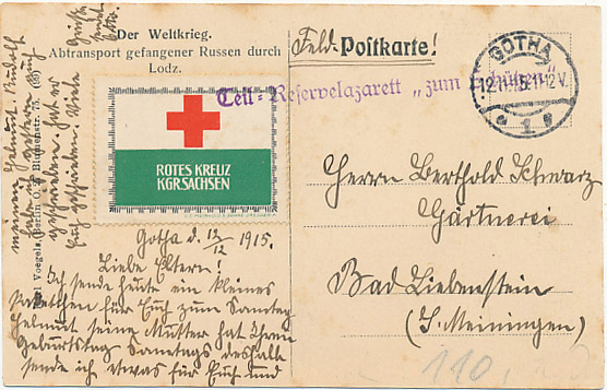 Łódź Jeńcy rosyjscy nalepka Czerwony Krzyż stempel