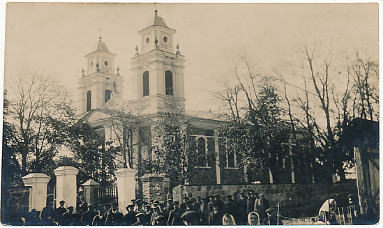 Pocztówka fotograficzna Łoździeje Kościół postkarte Lasdien postcard Lazdijai открытка Лаздияй pocztówki Kresy wschodnie pocztówki z kresów Kresy na starych pocztówkach