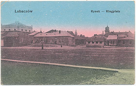 Lekko zgięty górny róg. Pocztówka Lubaczów Rynek synagoga postkarte Lubaczow Synagoge postcard Lubaczow synagogue открытка Любачув синагога pocztówka judaica, judaika, postkarte Judentum, Judaica Postkarte, postcard Judaism, Judaica postcard, открытки Иудаика
