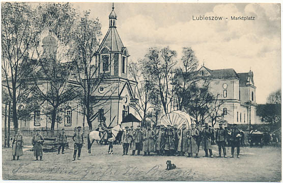 Pocztówka Lubieszów Rynek wojsko postkarte Ljubeschiw postcard Liubeshiv открытка Любешів Lubesziw Любешов pocztówki Kresy wschodnie  pocztówki z kresów Kresy na starych pocztówkach