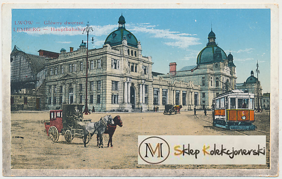 Pocztówka Lwów dworzec kolejowy, postkarte Lemberg Bahnhof, postcard Lviv railway station, открытка открытка Львів вокзал, pocztówki Kresy wschodnie, pocztówki z kresów, Kresy na starych pocztówkach, pocztówki dworzec kolejowy, postkarte Bahnhof, postcard railway station, открытка вокзал, pocztówki dworce kolejowe