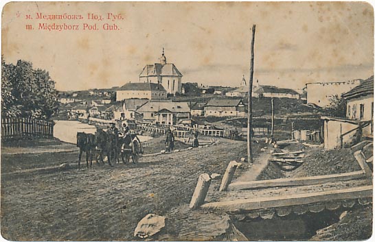 Zgięte rogi. Pocztówka Międzybóż Międzyborz postkarte Medschybisch postcard Medzhybizh открытка Меджибож około 1910r bez obiegu pocztówki Kresy wschodnie pocztówki z kresów Kresy na starych pocztówkach