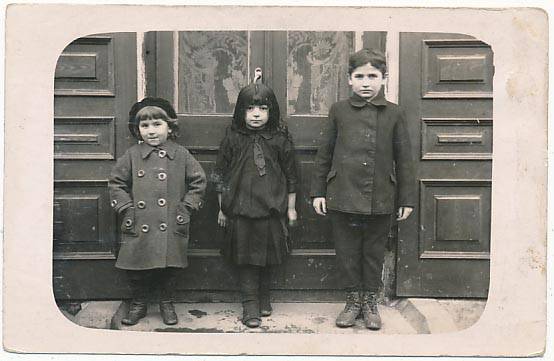 Ślady odklejania. Pocztówka fotograficzna Międzyrzec Podlaski Dzielnica żydowska dzieci postkarte Miendzyrzec postcard Międzyrzec Podlaski открытка Мендзыжец-Подляски, Межиріччя pocztówka judaica, judaika, postkarte Judentum, Judaica Postkarte,postcard Judaism, judaica postcard,Открытка иудаизм, Иудаика открытки