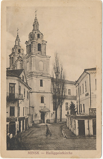 Pocztówka Mińsk Heiliggeistkirche postkarte Minsk weißrussischland Heiliggeistkirche postcard Minsk Belarusian открытка Минск белор pocztówki Kresy wschodnie pocztówki z kresów Kresy na starych pocztówkach postkarte Weissrussland postcard Belarus открытка Белоруссия