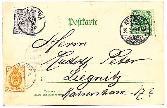 Pocztówka Mysłowice Trójkąt trzech cesarzy postkarte Gruss von der Myslowitz z obiegu 1899r