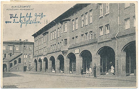 Pocztówka Nikiszowiec Katowice Konsumy i komisariat postkarte Nikischschacht postcard Nikiszowiec z obiegu Szopienice.