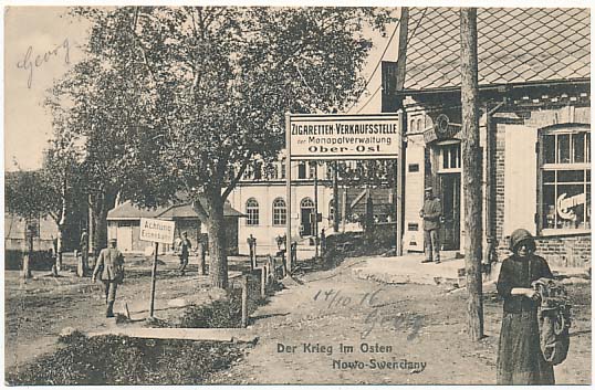 Pocztówka Nowe Święciany Sklep w głębi widoczna synagoga postkarte Nowo-Swientziany postcard New Swientziany открытка Новые Свенцяны pocztówki Kresy wschodnie pocztówki z kresów Kresy na starych pocztówkach pocztówka judaica, postkarte Judentum, Judaica Postkarte, postcard Judaism, Judaica postcard, Открытка иудаизм, Иудаика открытки
