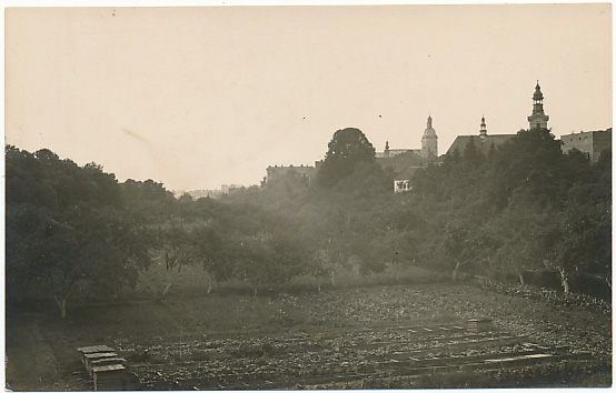 Pocztówka fotograficzna Nowy Sącz Ogrody widok na kościół postkarte Neu Sandez, Neu Sandec postcard Nowy Sacz открытка Новы-Сонч bez obiegu.