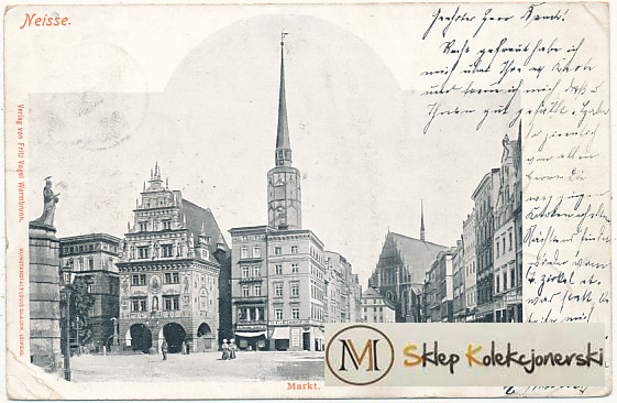 Zgięty róg. Pocztówka Nysa Rynek, postkarte Neisse, postcard Nysa, открытка Ныса, pocztówki długi adres
