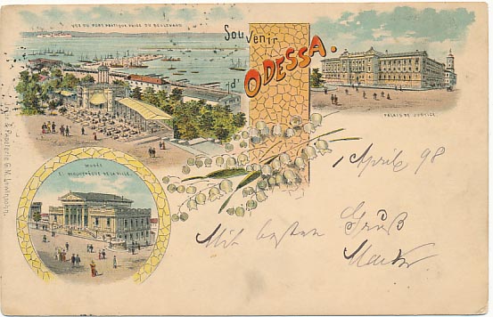 Pocztówka Odessa Souvenir Odessa postkarte Odessa postcard Odessa Russian открытка Одесса z obiegu 1898r długi adres