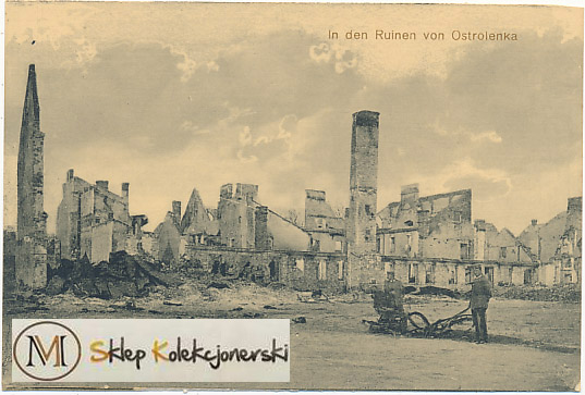Pocztówka Ostrołęka Zniszczone miasto, postkarte Ostrolenka, postcard Ostrolenka, открытка Остроленка