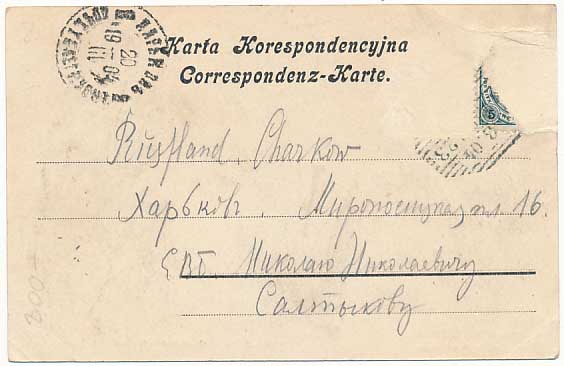 Pocztówka Gruss aus Podwołoczyska postkarte Pidwolotschysk postcard Pidvolochysk открытка Подволочиск z obiegu 1904r długi adres pocztówki Kresy wschodnie  pocztówki z kresów Kresy na starych pocztówkach