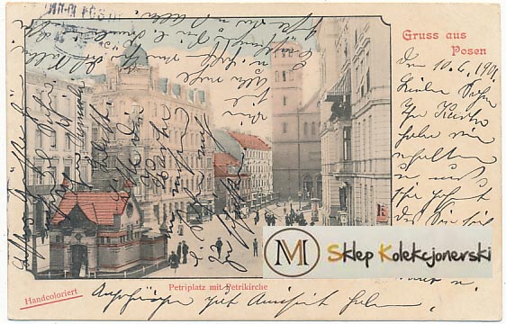 Pocztówka Poznań Gruss aus Posen, postkarte Gruss aus Posen, pocztówki długi adres