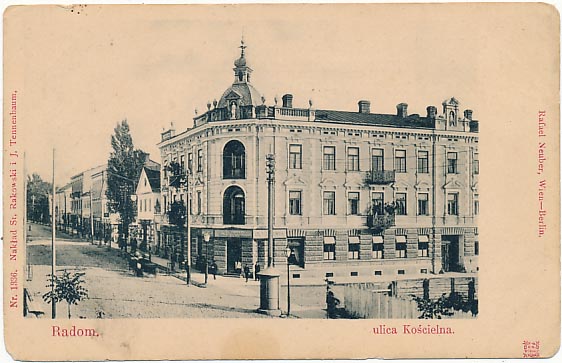 Zaokrąglone rogi. Pocztówka Radom Ulica Kościelna postkarte Radom postcard Radom открытка Радом bez obiegu długi adres