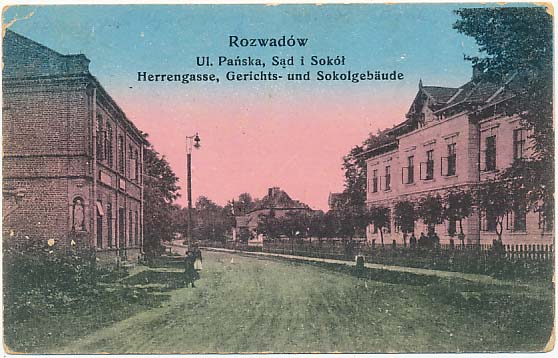 Pocztówka Rozwadów Ulica Pańska budynek Sokoła pocztówka Stalowa Wola postkarte Rozwadow postcard Rozvedov