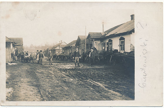 Pocztówka fotograficzna Sandowaniszki Ulica postkarte Sandowaniszki postcard Sandowaniszki pocztówki Kresy wschodnie pocztówki z kresów Kresy na starych pocztówkach