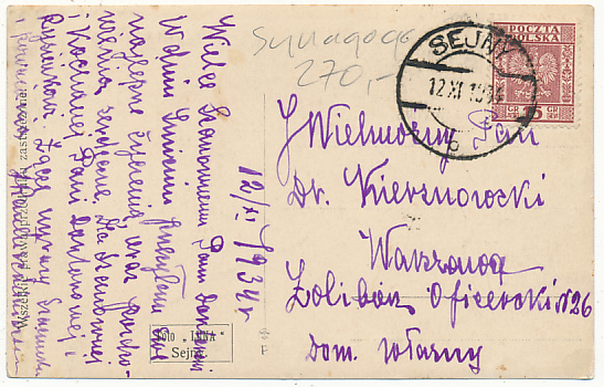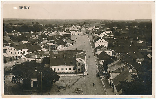 Pocztówka fotograficzna Sejny Widok ogólny synagoga postkarte Sejny synagoge postcard Seinai synagogue открытка Сейны синагога Foto LUNA Sejny z obiegu 1934r