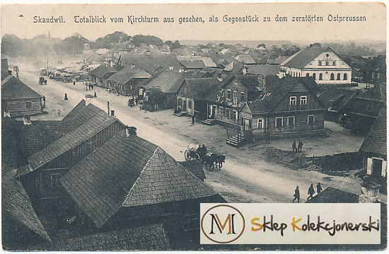 Pocztówka Skaudwile widok ogólny synagoga, postkarte Skaudwil Synagoge, postcard Skaudvilė Synagogue, открытка Скаудвиле синагога pocztówka judaica, judaika, postkarte Judentum, Judaica Postkarte, postcard Judaism,Judaica postcard, открытки Иудаика pocztówki Kresy wschodnie pocztówki z kresów Kresy na starych pocztówkach