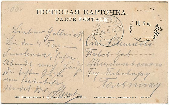 Pocztówka Smoleńsk Łopatiński ogród postkarte Smolensk postcard Smolensk oткрытка Смоленск z obiegu 1913r.