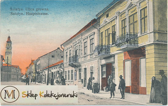 Pocztówka Śniatyn Ulica Główna, postkarte Snjatyn, postcard Sniatyn, открытка Снятын, Снятин, Sniatyn, pocztówki Kresy wschodnie, pocztówki z kresów, Kresy na starych pocztówkach