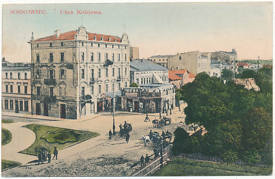 Pocztówka Sosnowiec Ulica Kolejowa postkarte Sosnowitz postcard Sosnowiec открытка Сосновец z obiegu 1914r